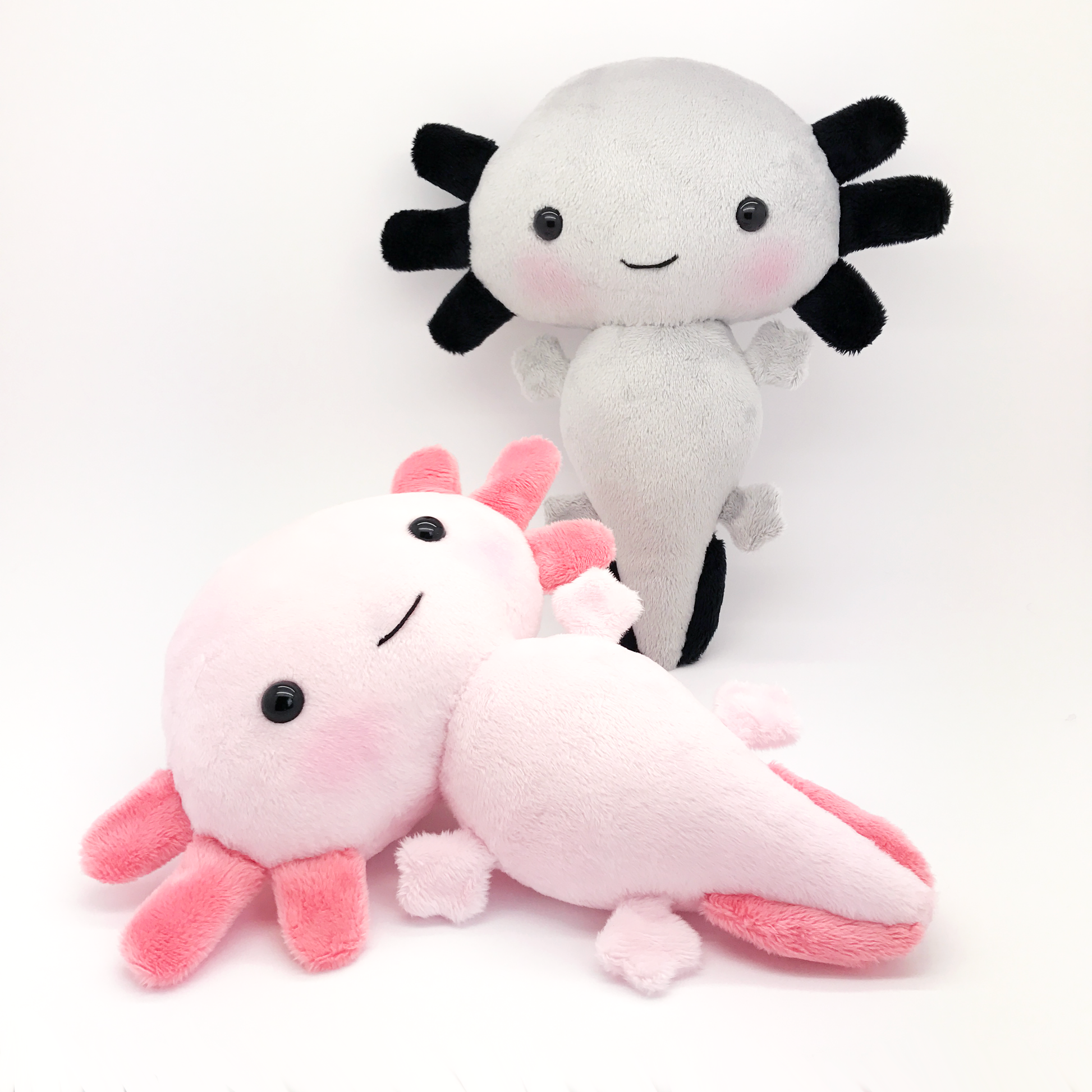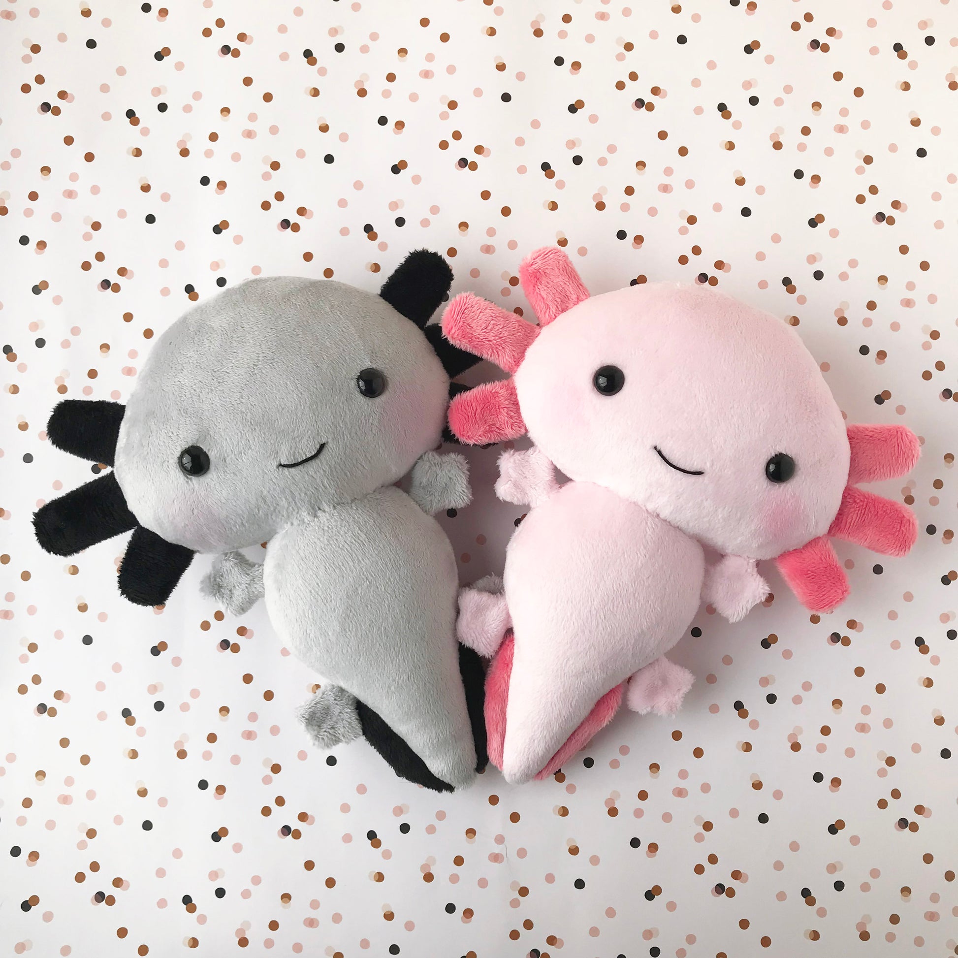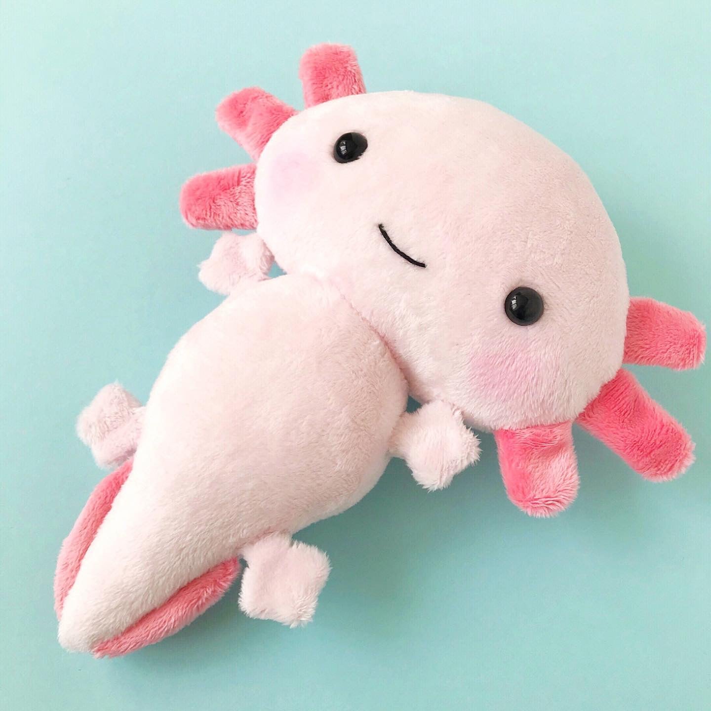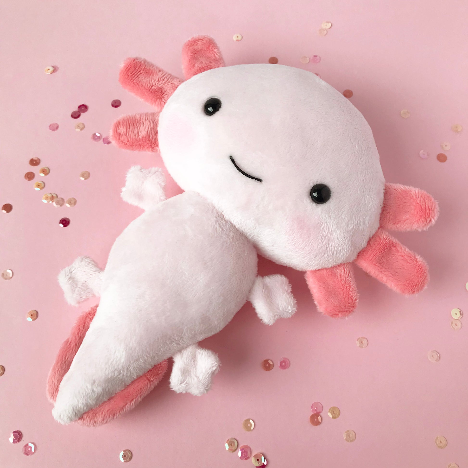 This cute axolotl is handmade of the softest light pink minky fabric, which makes him irresistible for big cuddles and stuffed with hypo allergenic stuffing.