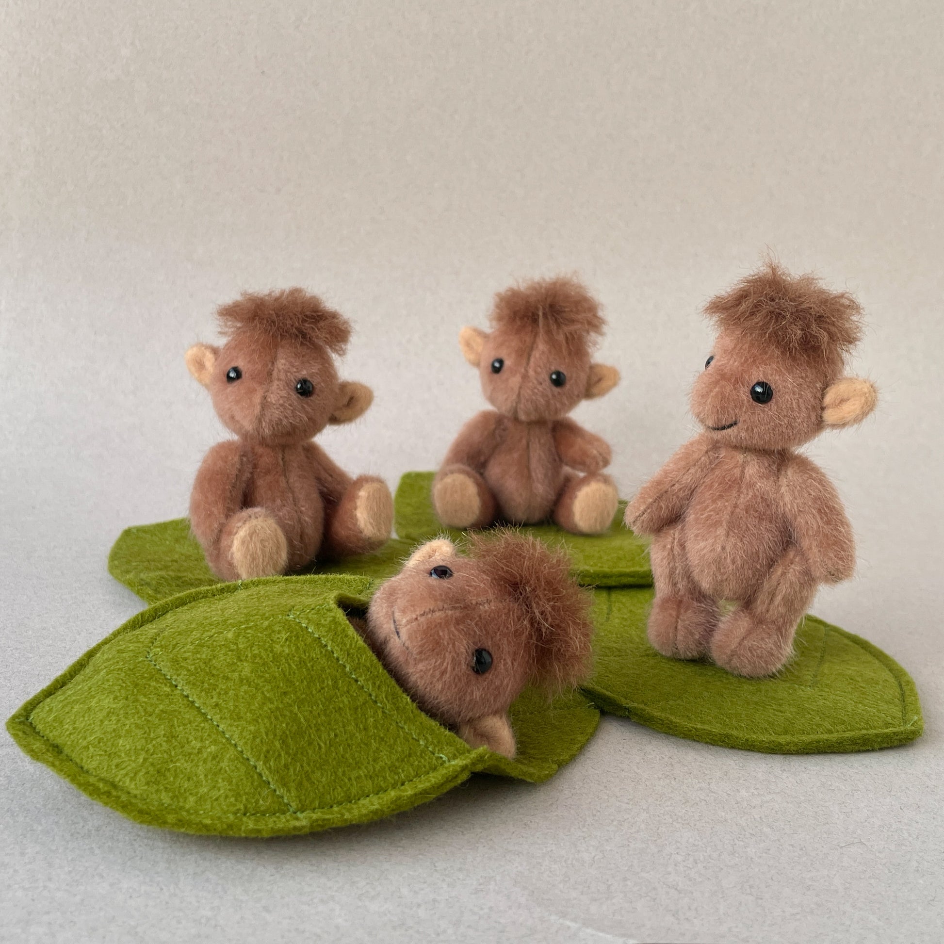 Their body is sewn from a high quality mini teddy faux fur and stuffed with organic sheep wool and metal granules for extra weight.